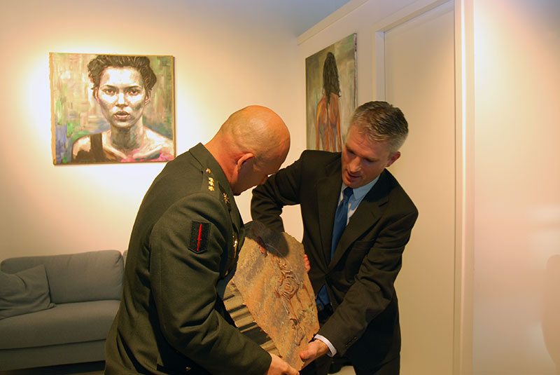 Presentatie schilderij van Gijs Donker "Nachtelijk Uruzgan" door Marco Kroon